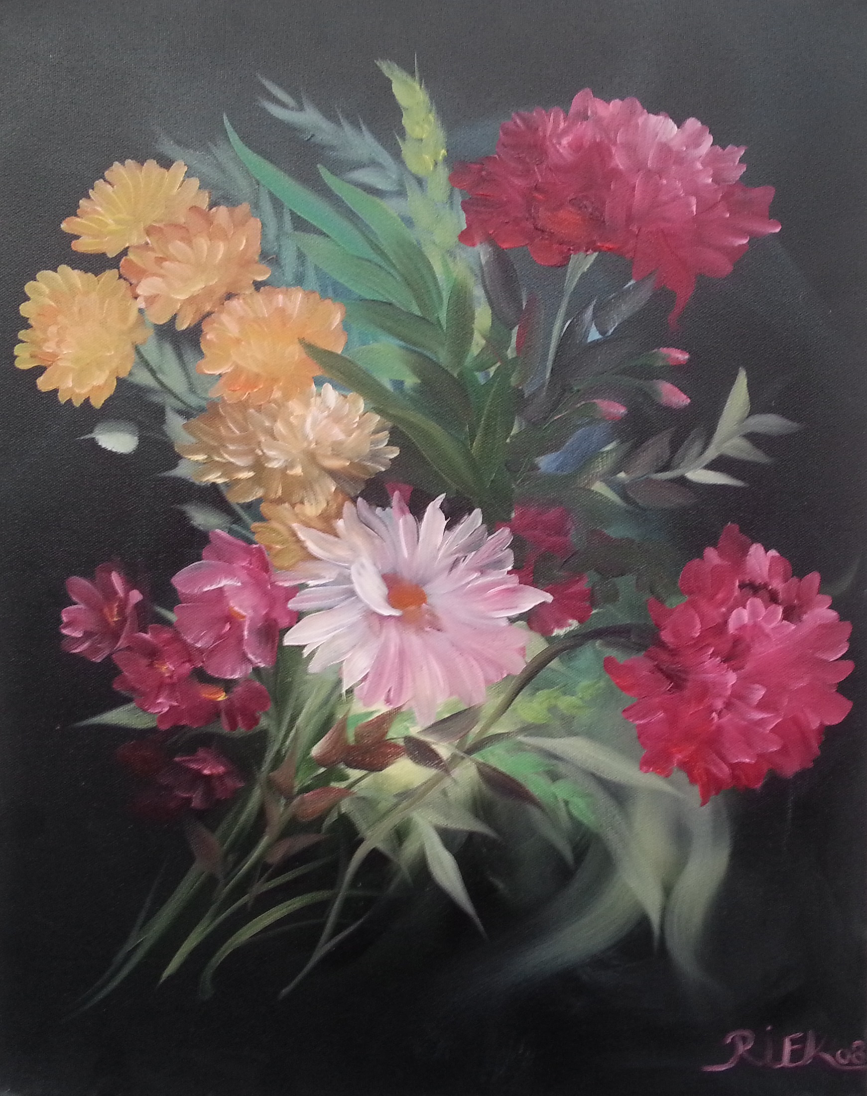Riek volgde haar opleiding rechtstreeks bij Gary en Kathwren Jenkins in Berlijn en behaalde achtereenvolgens haar Zilver, Goud, Platina en Master-certificering. Als officiële J-Cat (Jenkins Certified Art Teacher) mag zij lesgeven in deze unieke techniek. Met haar jarenlange ervaring en liefde voor schilderen begeleidt zij je met geduld en enthousiasme.