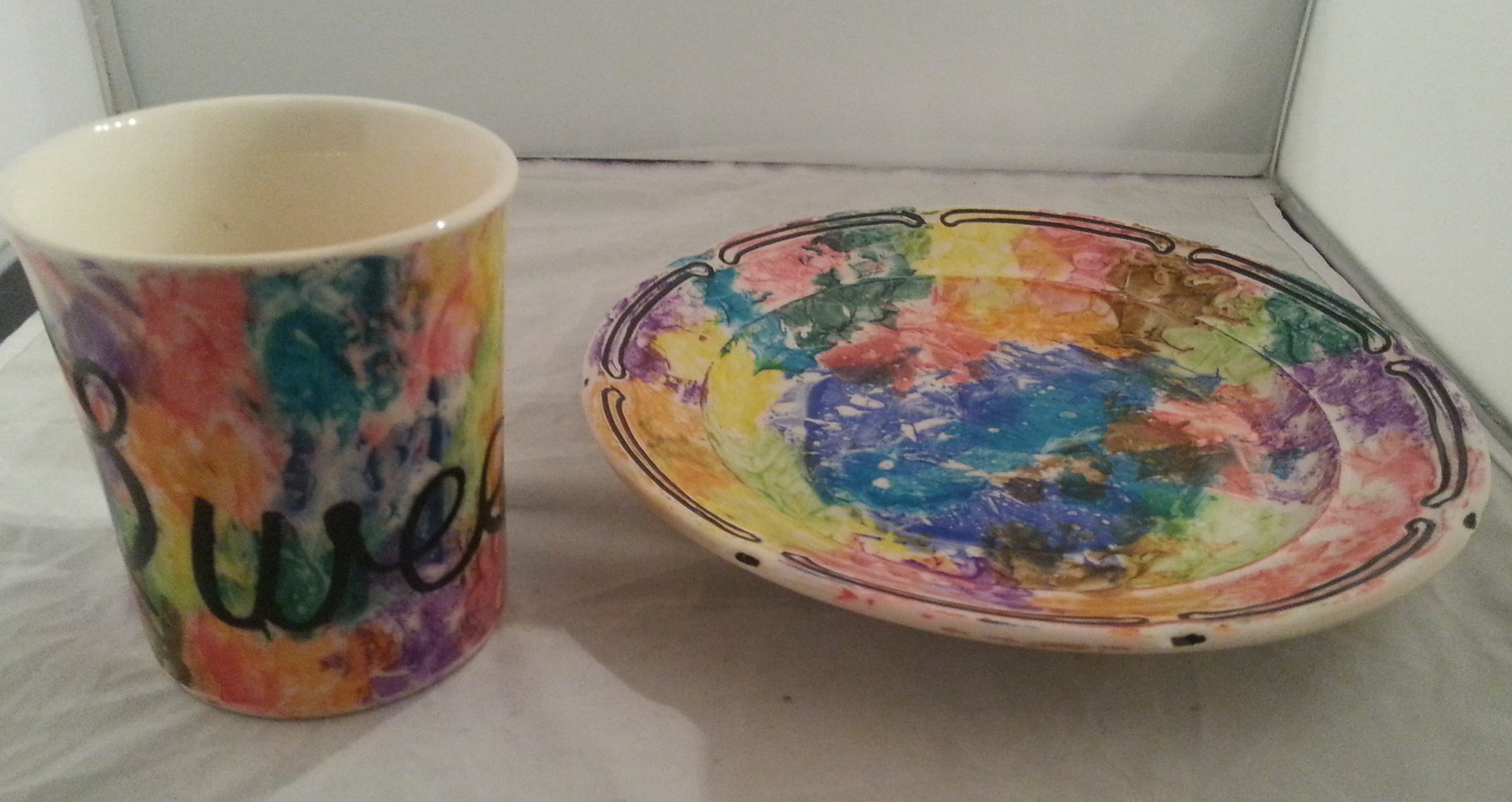 - Schilderen op glaswerk of porselein met verf en porseleinstiften