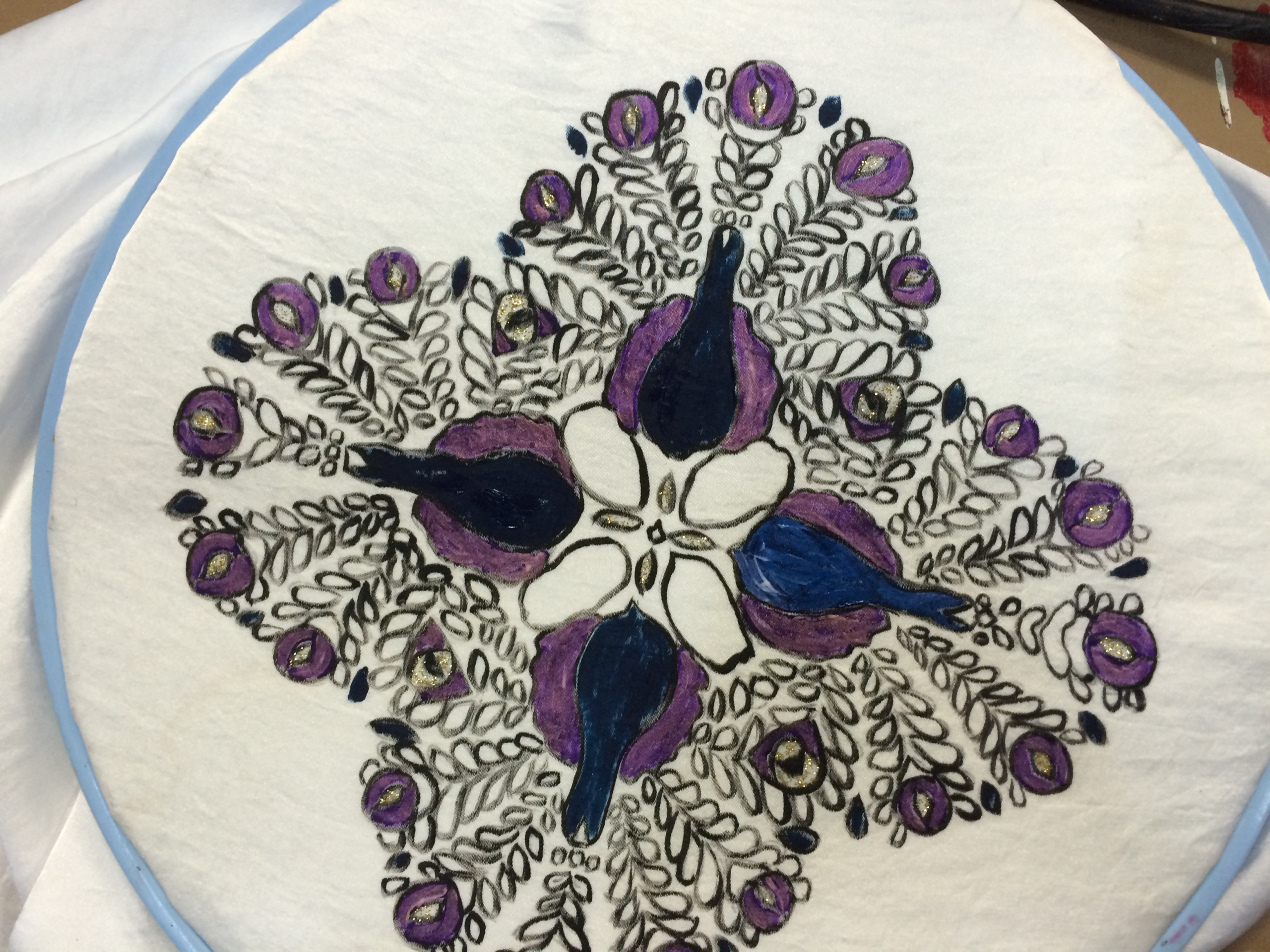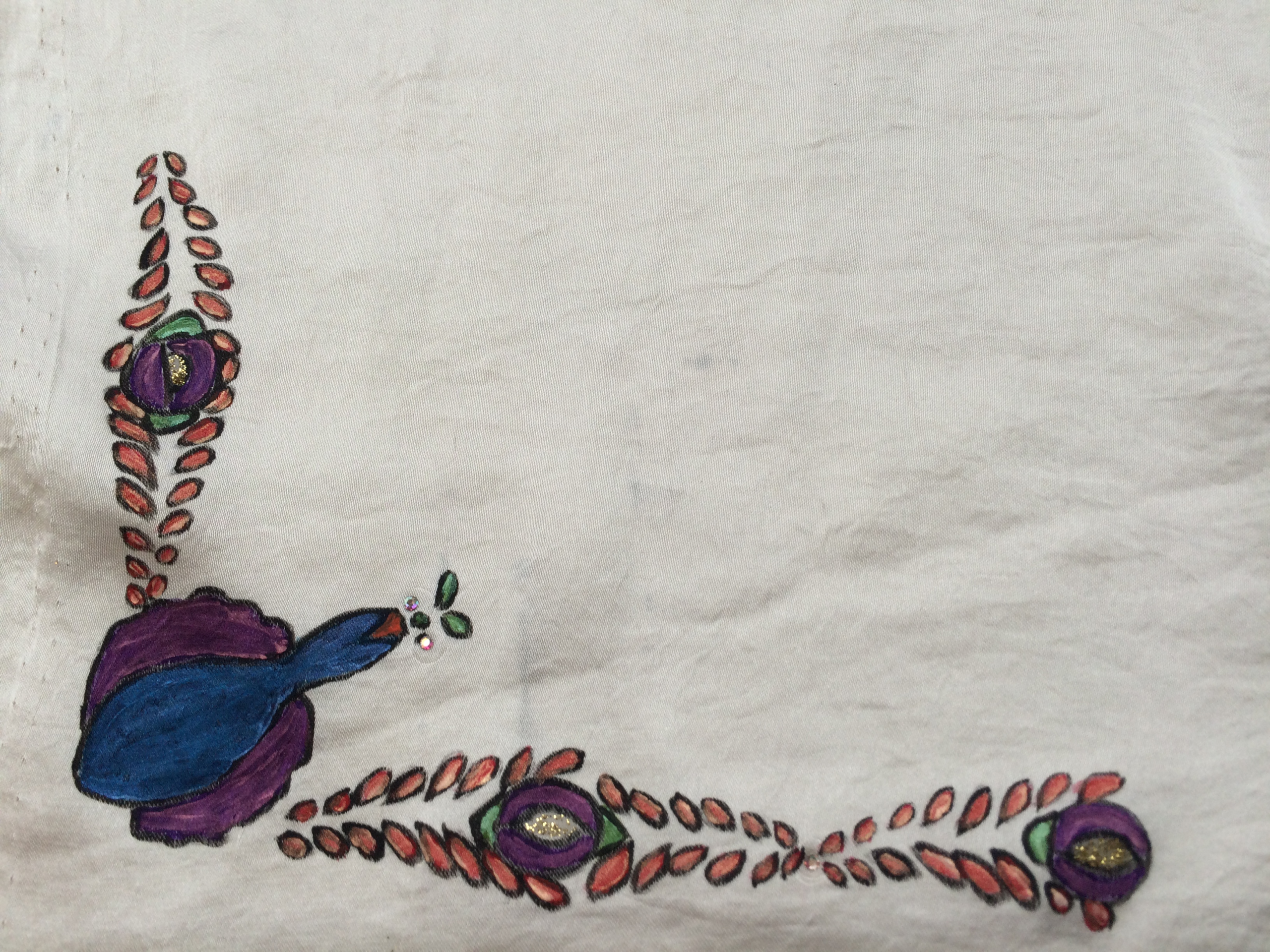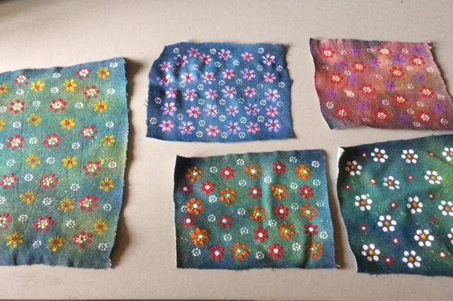 - Werken met diverse textielsoorten en materialen zoals verf, strass, lint en kant