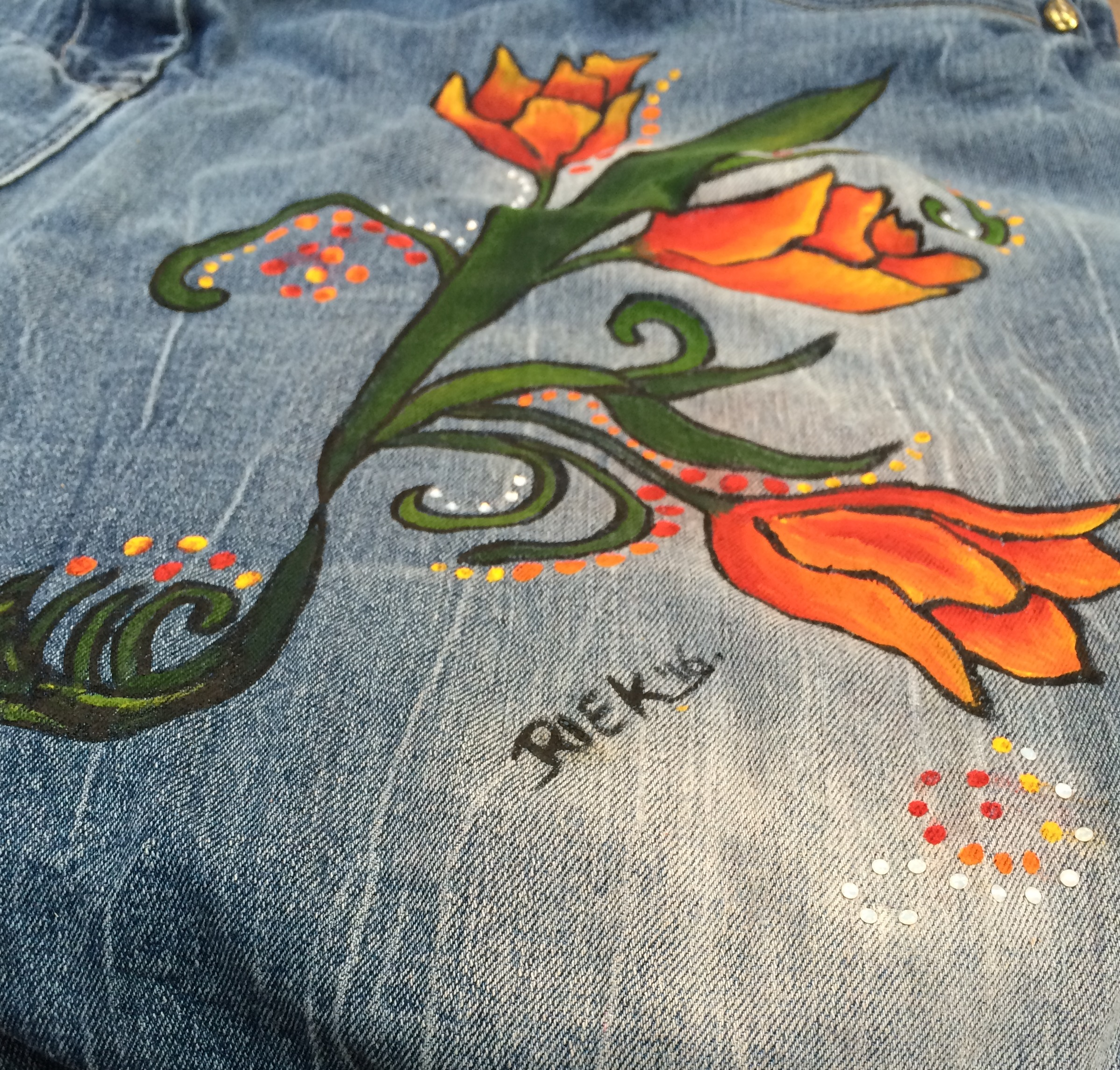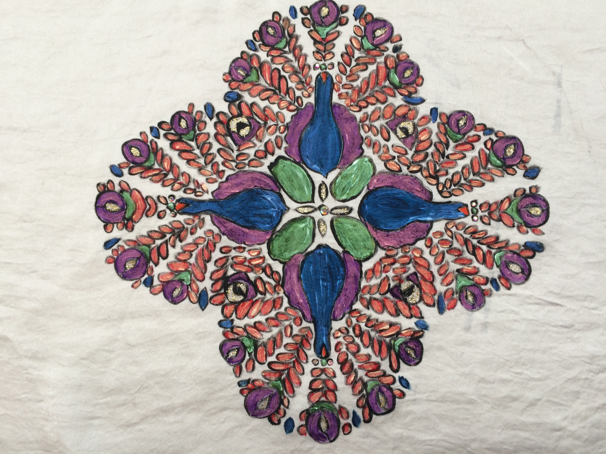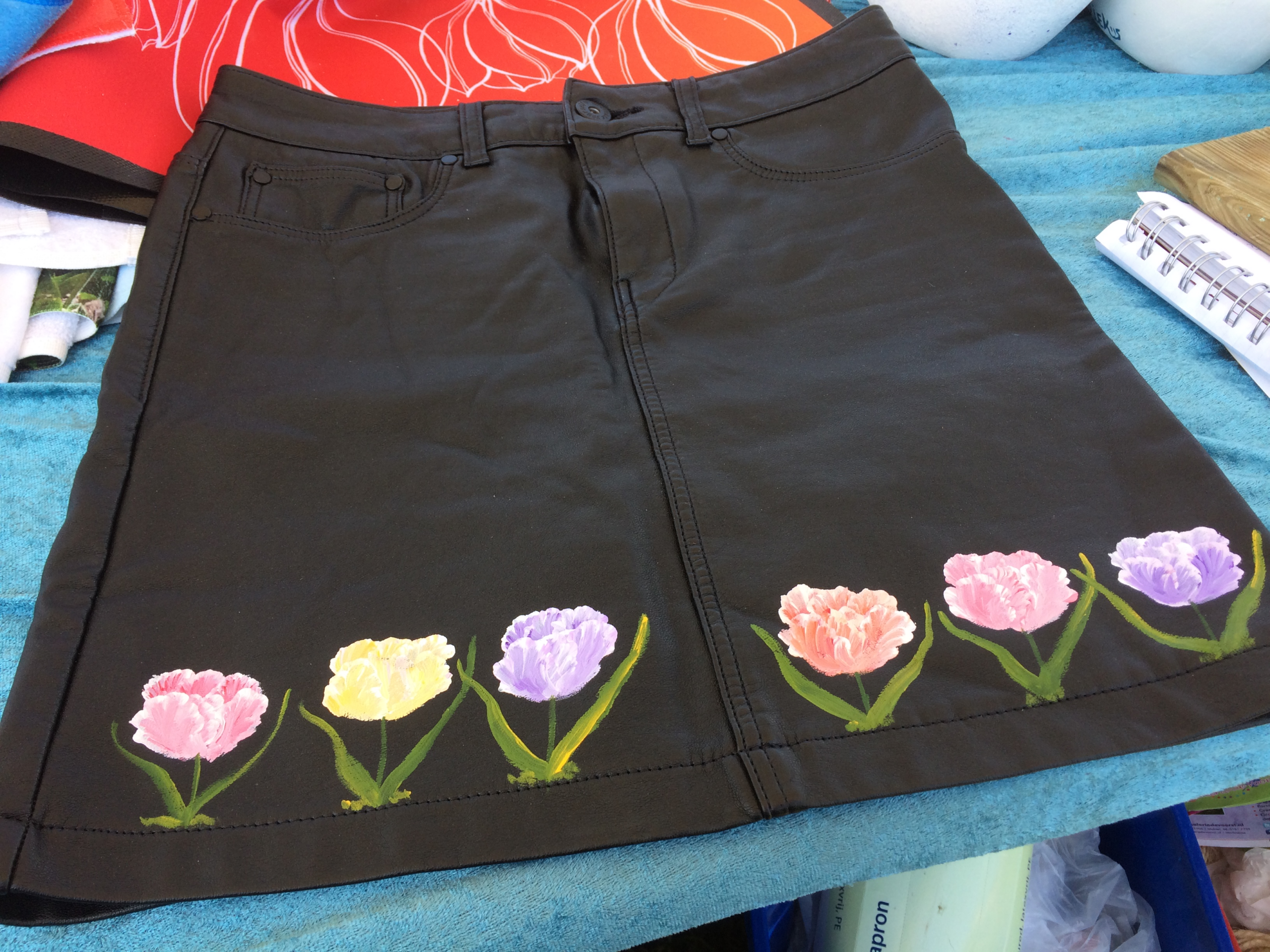 - Werken met diverse textielsoorten en materialen zoals verf, strass, lint en kant